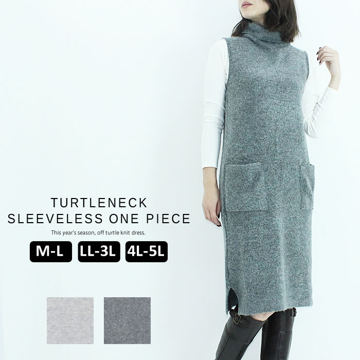 タートルネック ノースリーブ ニット ワンピース ニットワンピ ノースリ ワンピ ひざ丈スカート 春 夏 秋 冬 春服 夏服 秋服 冬服 M L LL XL 2L 3L XXL 2XL 4L XXXL 3XL チャコールグレー ライトグレー レディース ファッション ユニークポケット 【プレゼント】
