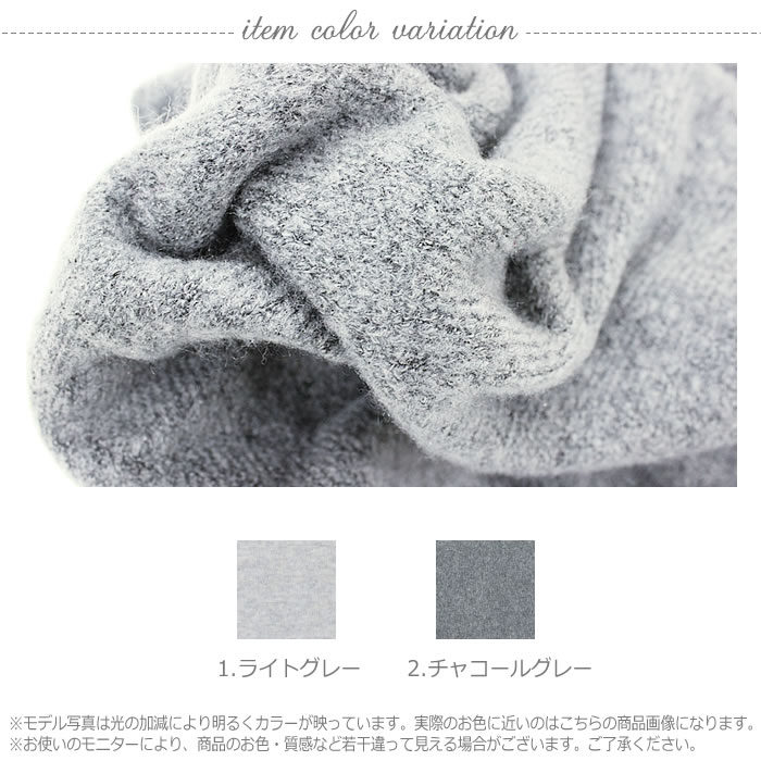 仕様ワンピース素材アクリル71%・ポリエステル26%・ポリウレタン3%サイズM-L(着丈:103cm、肩幅:38cm、バスト:90cm、袖幅:18cm)・LL-3L(着丈:108cm、肩幅:40cm、バスト:104cm、袖幅:18cm)・4L-5L(着丈:113cm、肩幅:42cm、バスト:110cm、袖幅:18cm)カラー1.ライトグレー・2.チャコールグレーメール便配送メール便不可商品説明首をやさしく包むタートルネック。
