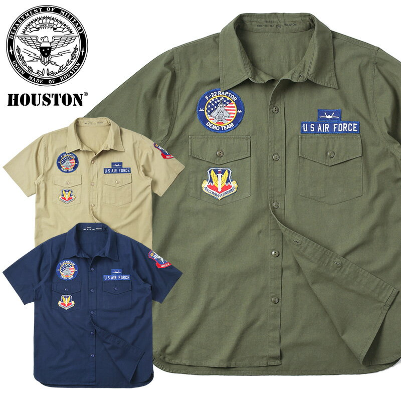 【大特価】HOUSTON ヒューストン 40595 S/S PATCHED POPLIN ミリタリーシャツ USAF【クーポン対象外】